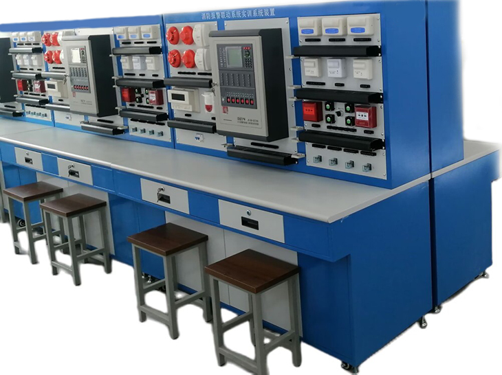 消防報警聯動系統實訓裝置,本系統在智能建筑中通常被作為智能建筑三大體系中的BAS(建筑設備管理系統)的一個獨立的子系統。該系統是通過消防系統中各個探測設備(煙感探測器及溫感探測器)的參數變化進行火災報警,并通過相關信號以實現消防的聯動控制。系統能進行各種模擬火災和報警聯動操作演示、系統的設置、聯動編程、線路設計、聯網、線路及設置故障的判斷及排除等實訓。
