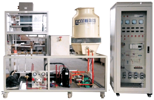 蓄冷空調(diào)制冷技術(shù)實(shí)訓(xùn)裝置是利用夜間低谷負(fù)荷電力制冰儲(chǔ)存在蓄冰裝置中,白天融冰將所儲(chǔ)存冷量釋放出來(lái),減少電網(wǎng)高峰時(shí)段空調(diào)用電負(fù)荷及空調(diào)系統(tǒng)裝機(jī)容量,它代表著當(dāng)今世界中央空調(diào)的發(fā)展方向。該實(shí)訓(xùn)裝置是根據(jù)《蓄冷空調(diào)系統(tǒng)原理、工程設(shè)計(jì)及應(yīng)用》、《蓄能空調(diào)技術(shù)及其發(fā)展》等課程的實(shí)踐教學(xué)而開發(fā)設(shè)計(jì)的新型實(shí)訓(xùn)設(shè)備。整個(gè)裝置采用直接蒸發(fā)制冰系統(tǒng),系統(tǒng)主要由制冷機(jī)組、蓄冰裝置、空調(diào)末端裝置、空調(diào)循環(huán)水泵、乙二醇泵、載冷劑(乙烯乙二醇水溶液)等組成。適合各院校空調(diào)工程專業(yè)、建筑環(huán)境與設(shè)備工程等專業(yè)相關(guān)課程的實(shí)訓(xùn)教學(xué)。