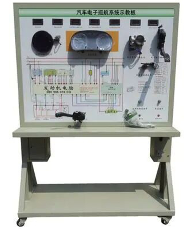 操縱油門踏板位置傳感器可實現節氣門開度的調,可真實展示電子節氣門的工作原理和工作過程;操縱巡航控制開關和車速信號,設定巡航狀態,引擎控制單元可對節氣門開度進行調節,真實演示汽車電子巡航系統的工作過程和工作原理。