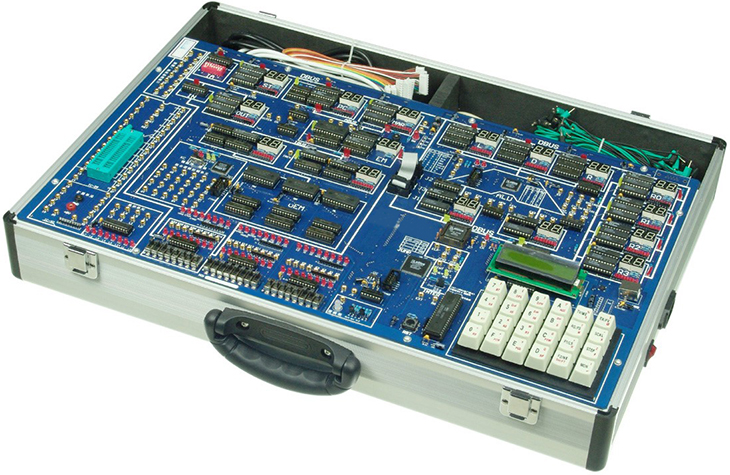 計算機組成原理與系統結構實驗箱 CPTH+是我公司吸收了國內先進的計算機組成原理實驗儀的優點,研制開發的一款八位、十六位兼容設計的計算機組成原理和系統結構實驗儀,系統由八位機主板和十六位機擴展實驗板組成,主板以八位機模式,用TTL74系列器件加多片在線可編程CPLD構建模型機部件,大大提高了實驗系統可靠性和二次開發的靈活性,讓學生以可視方式觀察CPU內各部件工作過程和模型機的實現。擴展實驗板以十六位機模式,用12萬門EP1C6芯片構建模型機所有部件,并配置64K×16位存儲器,通過VHDL語言編程,可設計16位機的部件和模型機,學生將設計好的電路下載到FPGA芯片上,實現16位機的部件和模型機功能;也可完成其它設計性實驗和課程設計實驗。在對八位機了解的基礎上,讓學生對十六位計算機組成原理有更深刻的理解,實現質的飛躍,為FPGA設計CPU打下堅實基礎。滿足不同層次的教學的需求。系統軟件提供了詳盡的信息窗口、運行圖表和多類幫助信息,使教學的過程輕松自如。
