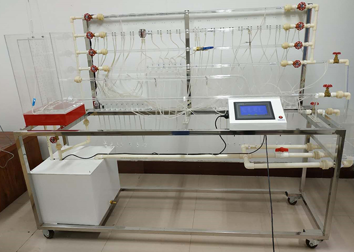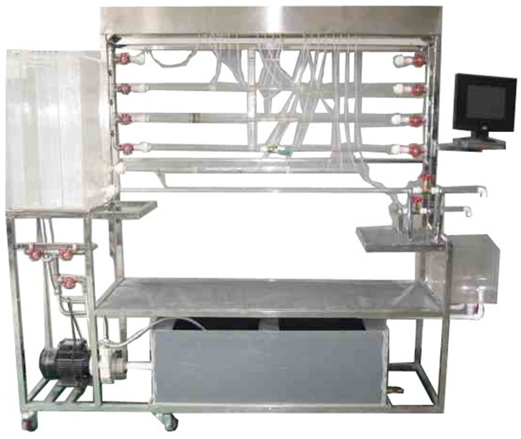 移動(dòng)式不銹鋼實(shí)驗(yàn)臺(tái)、儲(chǔ)水箱;雷諾測(cè)試管;伯努利測(cè)試管;沿程阻力系數(shù)測(cè)試管;突擴(kuò)、突縮測(cè)試管;閥門(mén)局部阻力系數(shù)測(cè)試管;孔板流量計(jì)測(cè)試管;文丘里流量計(jì)測(cè)試管;和皮托管測(cè)試管;測(cè)壓板直接顯示總水頭線和測(cè)壓管水頭線;壓力傳感器24套、流量傳感器4套、溫度傳感器1套、觸摸屏、測(cè)壓板。