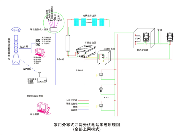 太陽電池組件在太陽光的照射下產生直流電流;太陽能控制器則協調太陽能電池板、蓄電池和負載的工作,具有自動防止儲能蓄電池過充電和過放電的功能。蓄電池在系統中的作用就是存儲能量,還能對系統起著調節電量、穩定輸出的作用。逆變器的作用是將蓄電池的直流電轉變為適合負載使用的正弦波交流電,逆變器輸出的交流電能進入配電柜;在配電柜內裝有用于輸出控制、過流保護、防雷保護等器件。