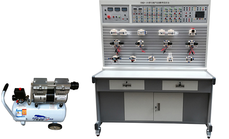 多功能氣動教學實訓臺、氣動PLC控制實驗裝置是根據《液壓與氣壓傳動》、《氣動控制技術》等通用教材內容要求,參考廣大師生的建議,精心設計而成。該系統除了可以進行常規的氣動基本控制回路實驗外,還可進行模擬氣動控制技術應用實驗、氣動技術課程設計,以及可編程控制器(PLC)學習及其基本應用實驗等,是機電完美結合的典型實驗設備。