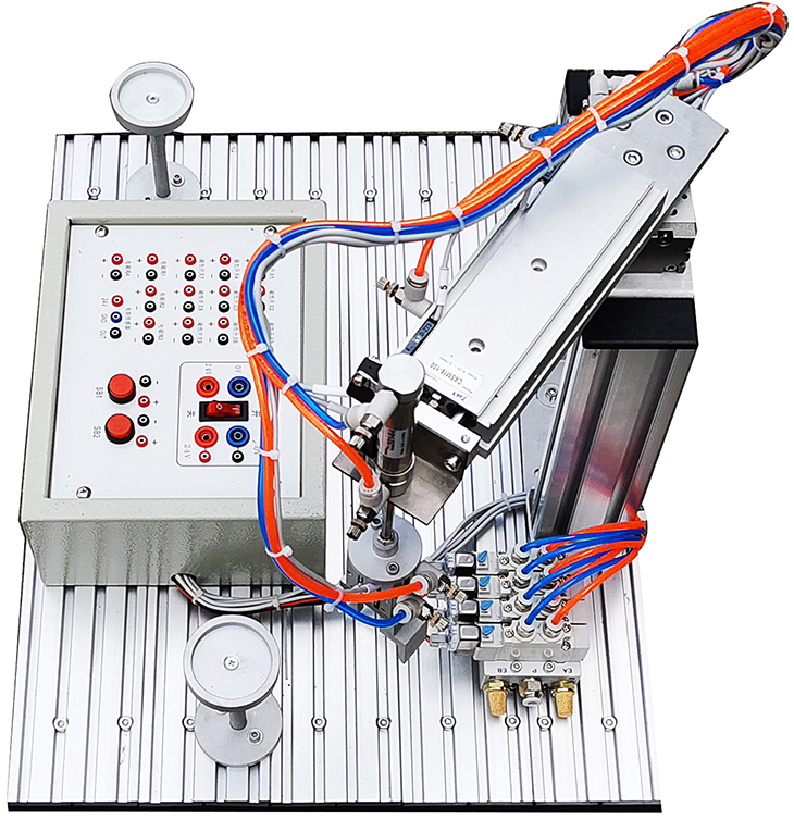 實訓裝置臺架為金屬結構,實訓考核裝置PLC模塊的I/O 端子、各常用模塊與PLC的連接端子,均與安全插座連接,使用帶安全插頭的導線進行電路連接;各指令開關、光電開關、傳感器和指示元件的電路,則通過端子排進行連接。插拔線連接電路與端子連接電路相結合,既保證學生基本技能的訓練、形成和鞏固,又保證電路連接的快速、安全和可靠。