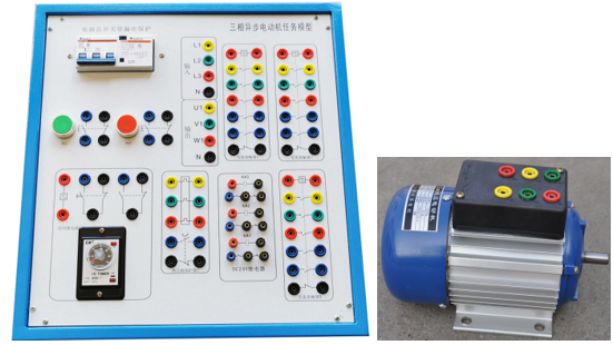該任務盒有1.2mm優質鋼板加工噴涂制作,面板有鋁板加工沖孔而成,表面貼膜制作,內置交流接觸器、中間繼電器、時間繼電器、斷路器、按鈕等,通過迭插端子與外部教具電機連接,滿足電機的多種教學目的,方便靈活。