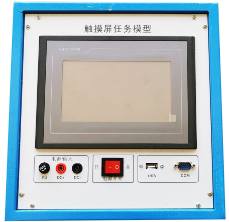該任務盒有1.2mm優質鋼板加工噴涂制作,面板有鋁板加工沖孔而成,表面貼膜制作,觸摸屏采用表面卡嵌式安裝,引出觸摸屏通訊接口與電源,便于實訓,易于觸摸屏的保護及搬運。