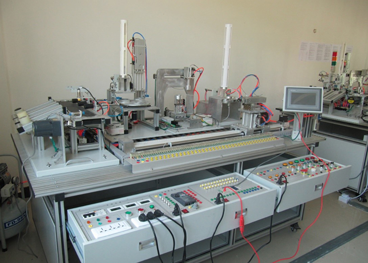 自動(dòng)生產(chǎn)線實(shí)訓(xùn)裝置由由鋁合金導(dǎo)軌式實(shí)訓(xùn)臺(tái)、典型的機(jī)電一體化設(shè)備的機(jī)械部件、PLC模塊、變頻器模塊、按鈕模塊、電源模塊、模擬生產(chǎn)設(shè)備實(shí)訓(xùn)模塊、接線端子排和各種傳感器、計(jì)算機(jī)等組成。整體結(jié)構(gòu)采用開(kāi)放式和拆裝式,實(shí)訓(xùn)裝置用于機(jī)械部件組裝,可根據(jù)現(xiàn)有的機(jī)械部件組裝生產(chǎn)設(shè)備,也可添加機(jī)械部件組裝其他生產(chǎn)設(shè)備,使整個(gè)裝置能夠靈活的按教學(xué)或競(jìng)賽要求組裝具有生產(chǎn)功能的機(jī)電一體化設(shè)備。模塊采用標(biāo)準(zhǔn)結(jié)構(gòu)和抽屜式模塊放置架,互換性強(qiáng);按具有生產(chǎn)性功能和整合學(xué)習(xí)功能的原則確定模塊內(nèi)容,使教學(xué)或競(jìng)賽時(shí)可方便的選擇需要的模塊。設(shè)備需完全符合電工電子全國(guó)職業(yè)技能大賽所要求,同時(shí)還要求具有可拓展功能,可以組成更加大型的生產(chǎn)模擬系統(tǒng),以配合各個(gè)用戶學(xué)校不同層次,不同專業(yè)的教學(xué)及培訓(xùn)要求。