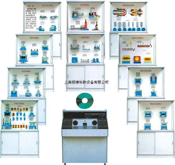 模具陳列柜,模具教學模型本公司力求實用根據學校教學要求需要、特制一套《冷沖壓與塑料成型工藝及模具設計》與《塑料成型模具》等教材設計而成的模具示教陳列柜,這套陳列柜共分十個柜和一臺DVD控制臺。模型材料采用工程塑料制作,板面附有必要文字說明,演示形象逼真,制作工藝美觀,使用本陳列柜提高教學效果,是一套現代化模具設計課程應用陳列室設備。
