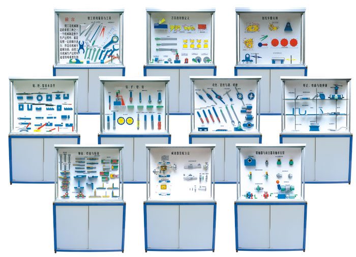 陳列柜、機(jī)械陳列柜、電機(jī)與變壓器陳列柜、機(jī)械基礎(chǔ)陳列柜、機(jī)械零件陳列柜、減速器陳列柜、機(jī)械原理陳列柜、機(jī)械制圖陳列柜、模具示教陳列柜、金屬切削陳列柜、金屬工藝學(xué)陳列柜、公差配合陳列柜、鉗工工藝學(xué)陳列柜、金屬刀具陳列柜、機(jī)床夾具陳列柜、車(chē)工工藝學(xué)陳列柜、機(jī)械設(shè)計(jì)基礎(chǔ)陳列柜、機(jī)械綜合陳列柜、機(jī)械制圖模型、立體示教模型、電機(jī)模型、變壓器模型、透明塑膠模具、五金教學(xué)模具、機(jī)械教學(xué)掛圖、機(jī)床電氣實(shí)訓(xùn)設(shè)備、機(jī)床維修考核設(shè)備、數(shù)控車(chē)床綜合實(shí)訓(xùn)考核實(shí)驗(yàn)臺(tái)、機(jī)電一體化實(shí)驗(yàn)臺(tái)、光機(jī)電一體化實(shí)訓(xùn)設(shè)備、工程制圖實(shí)驗(yàn)室設(shè)備,液壓氣動(dòng)PLC控制實(shí)驗(yàn)臺(tái)、透明液壓注塑機(jī)模型、透明注塑機(jī)模模型、冷沖圧機(jī)模型、多功能工程制圖桌、機(jī)械創(chuàng)新搭接實(shí)驗(yàn)臺(tái)、教學(xué)生產(chǎn)型數(shù)控車(chē)床、數(shù)控銑床、機(jī)電一體化《數(shù)控編程實(shí)驗(yàn)》、可編程控制實(shí)驗(yàn)臺(tái)、客貨兩用教學(xué)仿真電梯實(shí)訓(xùn)設(shè)備、鉗工實(shí)訓(xùn)設(shè)備、機(jī)械原理、機(jī)械零件、金屬切削刀具、公差配合、車(chē)工工藝學(xué)、鉗工工藝學(xué)、等系列陳列柜以及液壓演示臺(tái)