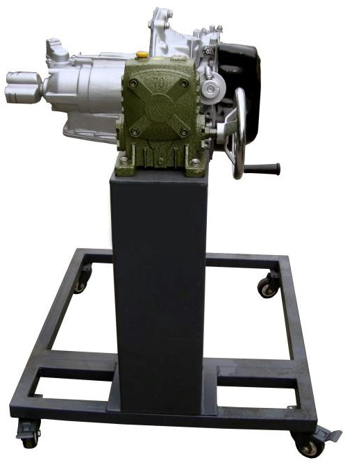 采用減速翻轉機構,可使變速器旋轉任意角度,并能任意位置鎖止,便于學生從不同的角度進行拆卸和裝配。