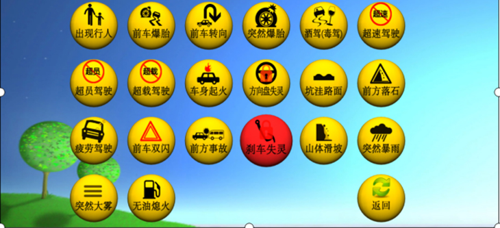 (2)雨天駕駛:突出道路濕滑、積水時的安全駕駛操作方法、防范汽車側滑、甩尾的駕駛規范,真實模擬雨點與玻璃的碰撞、視線的漸變、雨刮刮過的效果、車外后視鏡的模糊等,雨刮器的使用;霧天駕駛:突出視線不好,近光燈的使用、喇叭的使用及霧天安全駕駛要領;