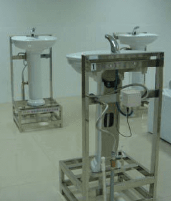 高級感應洗臉盆實訓裝置能供學生根據安裝規(guī)范,使用專用工具,將洗面器、立柱、感應水龍頭、角閥、軟管、下水管及五金配件在不銹鋼平臺上組裝成一個具有完整功能的感應洗臉盆,并為立盆安裝進排水管路,最后進行進水排水檢驗。
