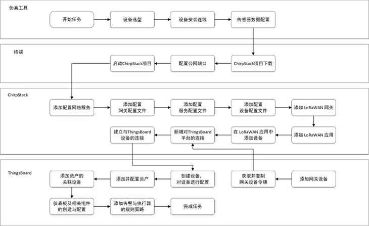 同時,平臺引入ChirpStack、Node-RED、ThingsBoard、Home Assistant等豐富的開源物聯網軟件資源,融合工程仿真和行業設備,實現物聯網的感知層設備、網關及網絡傳輸層、平臺及應用層的數據鏈路完整性,保證底層數據采集到前端應用效果的展現。