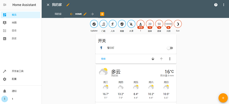 圖:智能家居課程案例,使用自動化智能家居平臺Home Assistant,對安裝好的感知層設備進行數據的瀏覽和各種自動或手動的執行操作。