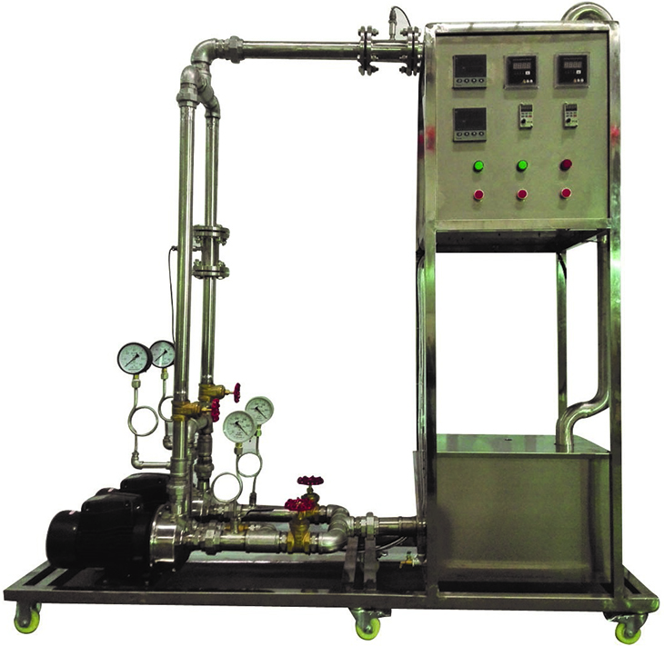 單相矢量變頻器,規(guī)格:(0-50)Hz。 指針式壓力表:表盤(pán)直徑Φ100mm 測(cè)量范圍0-0.6MPa,精度1.5級(jí)。 指針式真空表:表盤(pán)直徑Φ100mm 測(cè)量范圍-0.1-0MPa,精度1.5級(jí)。 功率變送器、智能功率數(shù)字顯示儀。 光電傳感器:數(shù)顯,測(cè)量范圍0~2999rpm,精度1rpm,轉(zhuǎn)速檢測(cè)機(jī)構(gòu)。 宇電AI702M溫度數(shù)字顯示儀。 宇電AI702M流量數(shù)字顯示儀。 DN40渦輪流量計(jì):1~20m3/h,4-20mA遠(yuǎn)傳輸出,流量檢測(cè)機(jī)構(gòu)。 不銹鋼離心泵:功率750W,最大流量7.2m3/h;2臺(tái)。 水箱:304不銹鋼材質(zhì),容積100L,帶貯水排空底閥,管路循環(huán)回水與泵吸入口間隔板設(shè)計(jì)。 管路:304衛(wèi)生級(jí)不銹鋼材質(zhì),采用不銹鋼快裝活接與管路連接,總出口閘閥;管道法蘭連接渦輪流量計(jì)。 電器:接觸器、開(kāi)關(guān)、漏電保護(hù)空氣開(kāi)關(guān)。 304不銹鋼儀表柜:測(cè)控、電器設(shè)備在實(shí)驗(yàn)架上。 304不銹鋼材質(zhì)框架1800*600*1900mm(長(zhǎng)×寬×高),帶腳輪及禁錮腳。 |