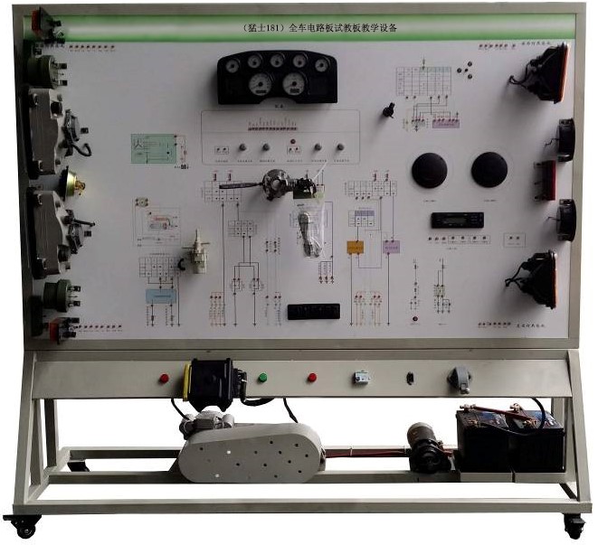 全車電路板試教板教學設備采用 全新 新款猛士181柴油機整車電器實物為基礎,充分展示汽車儀表系統、燈光系統、雨刮系統、喇叭系統、發動機電器系統、起動系統和充電系統等汽車電器各系統的組成結構和工作過程。