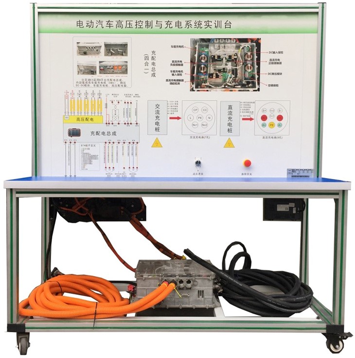 國標充電槍與充電座、(北汽EV160純電動汽車)高壓配電箱(帶各類高壓繼電器)、漏電傳感器模塊、絕緣傳感器模塊、安全維修塞模塊、漏電模擬操作單元、高壓安全系統(tǒng)操作單元、操作控制臺、訓練控制按鈕、直流接觸器(包含充電繼電器、總正繼電器、總負繼電器、預(yù)充繼電器)、一體化全鋁合金型材搭建的移動臺架(1500×700×1700mm 帶自鎖腳輪裝置,帶安裝檢測端子的原理面板,面板1448×940mm)、設(shè)備操作說明書。