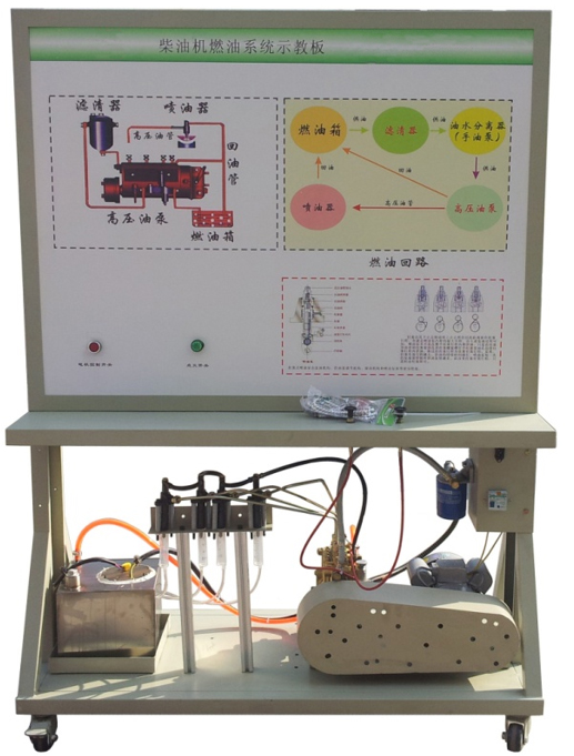 1.真實可運行的柴油發動機燃油噴射系統,充分展示柴油發動機燃油噴射系統的組成結構和工作過程。電機轉動高壓泵,可演示燃油噴射工作。