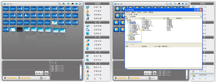 ⑥具有分屏廣播、文件分發、作業提交、網絡考場、遠程輔導、遠程監控、網絡影院、語音廣播、語音對話、錄制與回放功能。