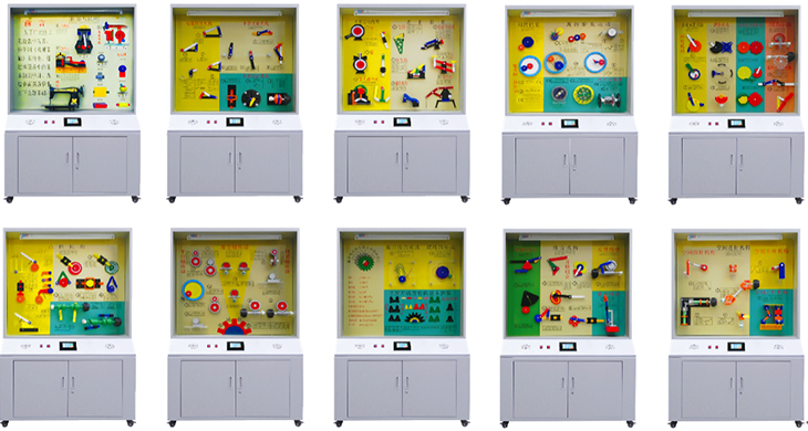 機(jī)械元件陳列柜是根據(jù)大、中專院校、技校、職業(yè)學(xué)校的機(jī)械原理教學(xué)大綱設(shè)計(jì)的電化教學(xué)設(shè)備。本陳列柜具有多功能語音播放控制系統(tǒng),語音解說同步演示,采用單獨(dú)驅(qū)動由電腦或電子設(shè)備控制運(yùn)轉(zhuǎn)演示,可由遙控控制順序自動運(yùn)行講解,又能根據(jù)教材、教學(xué)需要而遙控任意選擇還是單獨(dú)演示。模型材料采用進(jìn)口有機(jī)板制造,板面附有必要的圖表和文字說明,演示形象逼真,運(yùn)行可靠,制作工藝美觀,使用本陳列柜可提高教學(xué)效果,節(jié)約學(xué)時是一套現(xiàn)代化機(jī)械課程教學(xué)應(yīng)用實(shí)驗(yàn)室設(shè)備。
