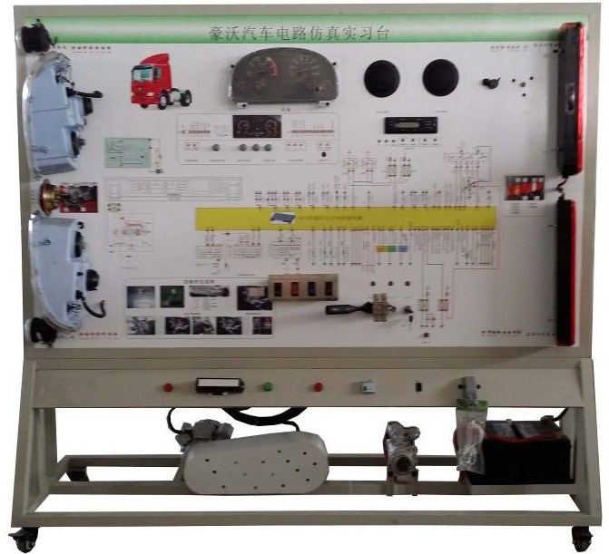 豪沃汽車電路仿真實習臺采用全新原整車電器實物為基礎,充分展示汽車儀表系統、燈光系統、雨刮系統、喇叭系統、發動機電器系統、起動系統和充電系統等汽車電器各系統的組成結構和工作過程。