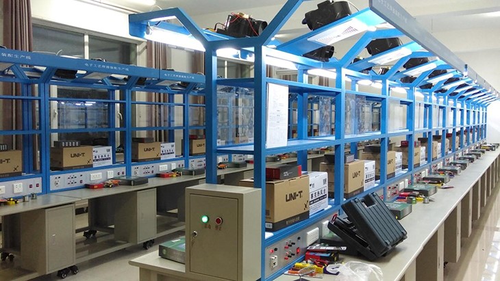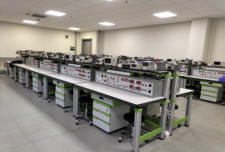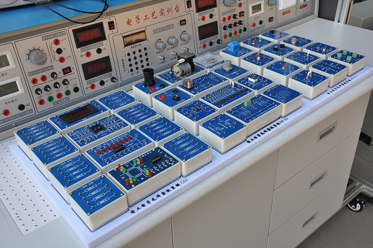 電子工藝實習室是供學生焊接練習、電子產品組裝調試操作的實驗室,學生進行焊接操作。配備的儀器設備主要有直流穩壓電源、示波器、萬用表、工具箱等。為了改善實習室的空氣環境衛生,還專門配備了抽風系統。開設的課程有《電子工藝實習》、《電工實習》,包括電路元件的選配、電子產品的安裝、焊接和性能測試等環節。電子工藝實驗實訓室設備主要面向汽車、機械、電信、電氣、計算機、經濟、管理等學院的學生,培養學生的動手實踐能力、分析問題和解決問題的能力以及創新精神。