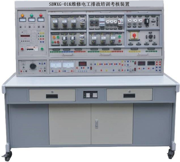初級維修電工實訓室設備可作為維修電工考核裝置,有可在網孔板上進行照明器件及線路的安裝,電工儀表測量線路的安裝、電工儀表測量線路的安裝、配電盤的裝配訓練,電動機的控制線路安裝訓練。
