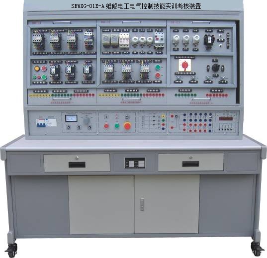 維修電工實訓裝置,維修電工及儀表照明實訓裝置,維修電工實訓裝置是按照勞動和社會保障部頒發的職業技能鑒定的要求而設計的,該裝置集理論、實際操作和考核鑒定為一體的多功能設備,此實訓臺為無線電源控制,通過觸摸屏控制各實訓臺電源,控制調節方便簡單,不僅可滿足我系機電一體化技術、生產過程自動化、汽車檢測與維修,鐵道信號自動控制,鐵道供電技術等專業的學生進行電工儀表和照明電路的實訓操作教學,而且也可用于初、中、高級維修電工技能考核。