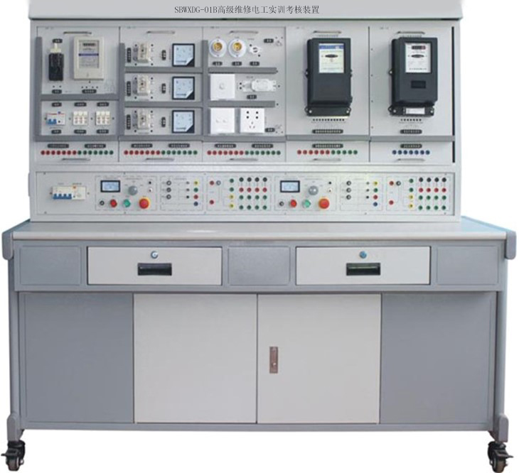 電氣安裝與維修實訓考核裝置是根據工廠電氣安裝和室內電氣安裝等維修 電工和電氣安裝工實訓鑒定要求開發的一種通用實訓平臺。 適合于各類職業院校 和技工學校維修電工、 電氣安裝工、水電工等有電氣實訓要求的相關專業的作為 公共實訓平臺使用。 采用鋼制網孔板和鋼制專用型材組接而成,安裝有自鎖式腳輪,方便移動和使用。裝 置表面噴塑,色彩穩重氣派。電氣安裝與維修實訓裝置設計高度以人站在一級人字梯即可方便操作的高度,既安 全又能使使用者感受到施工現場環境。 橫向、 叢向寬度合適, 可以模擬現場線路的轉向布置。