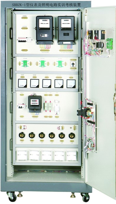 儀表及照明電路實訓考核設備是按照勞動和社會保障部頒發的"工人等級標準"和"職業技能鑒定"規范要求而設計的,它集培訓、理論、實際操作和考核鑒定為一體的多功能設備。該裝置采用實際應用的配電柜為主體,合理利用柜體的雙面空間,進行合理布局,配置可靠的元器件。它既可用于對電工儀表和照明電路的操作實訓。也可作為初、中、高級電工技能考核設備。